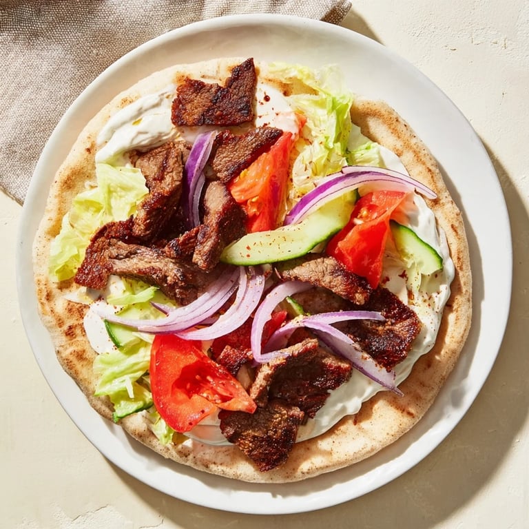 Save Tender spiced beef strips wrapped in warm flatbread with fresh vegetables and a tangy, creamy yogurt sauce: a Middle Eastern street food classic. These Beef Shawarma Wraps are both satisfying and packed with flavor.