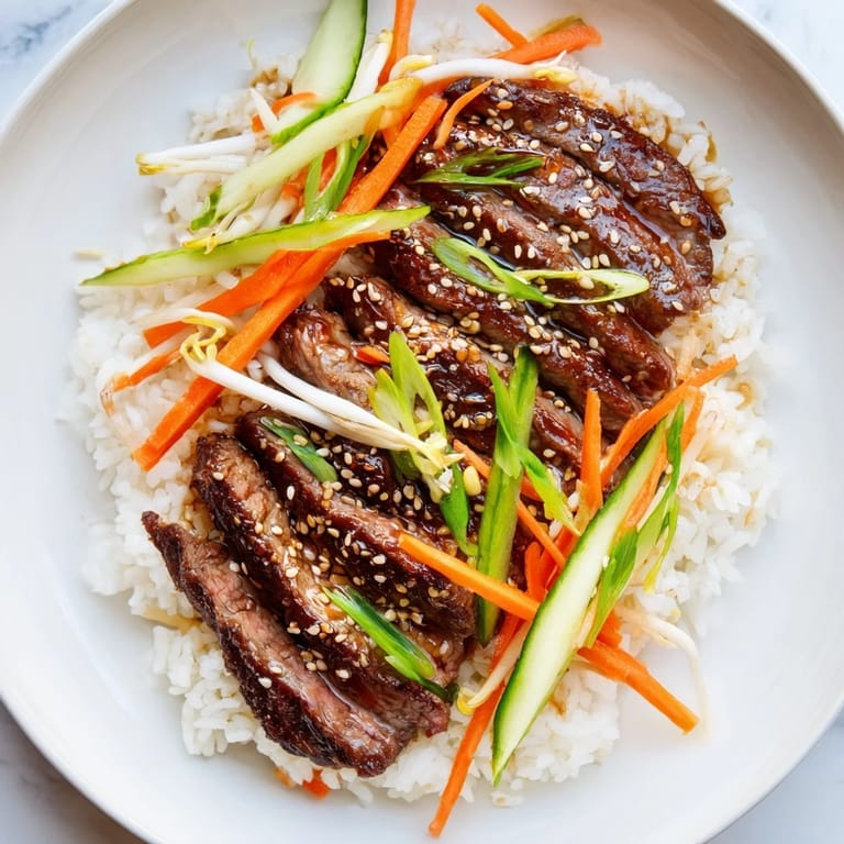 Save The first time I made bulgogi at home, I was chasing that electric sizzle sound from a Korean restaurant I'd visited months before. I remember standing in front of my open fridge, wondering if I could actually recreate that glossy, caramelized beef with just a few pantry staples and a hot skillet. Turns out, the secret wasn't fancy technique at all—it was the pear, of all things, that turned sweet marinade into something alive and complex. Now whenever I have a quiet Tuesday night and want dinner to feel special, this bowl gets made.