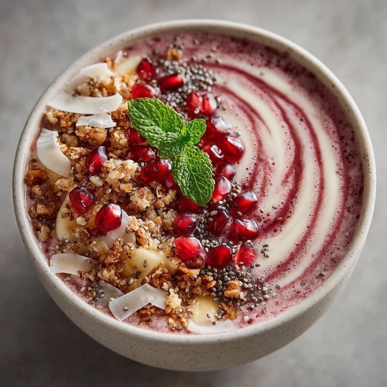 Save This vibrant Cherry-Coded Holiday Smoothie Bowl transforms ordinary mornings into festive celebrations. The combination of sweet cherries and pomegranate creates a beautiful ruby-red base that's both nutritious and Instagram-worthy.