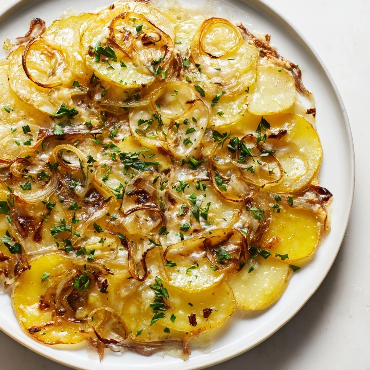 Save There's something magical about transforming humble potatoes and onions into something that tastes like you've been slaving over a French bistro stove all afternoon. I discovered this dish by accident one winter evening when I had caramelized too many onions for a simple gratin and decided to layer them with crispy potato slices instead of discarding them. The moment the cheese hit the oven and started to bubble, my kitchen filled with this incredible aroma—butter, sweet onions, melted Gruyère—and I realized I'd stumbled onto something special.