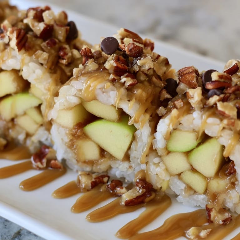 I first tried making these rolls when my kids requested something different for dessert. They loved the sweet-tart apple and caramel flavor combined with the soft sushi rice, and now it's a go-to treat for movie nights.