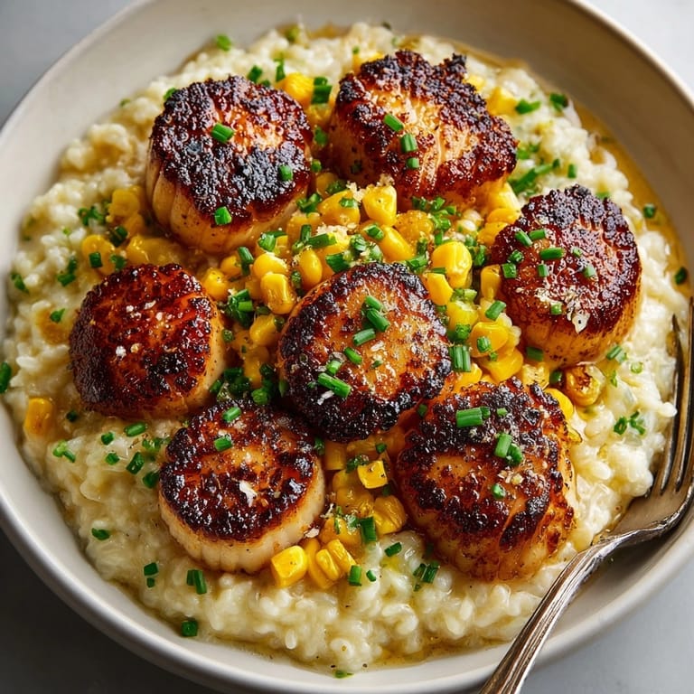 Save Impress your guests or treat yourself to something special with honey butter seared scallops nestled over a comforting bed of creamy corn risotto. This dish brings together sweet caramelized seafood and luscious, cheesy grains in a way that feels both restaurant luxe and totally achievable at home.