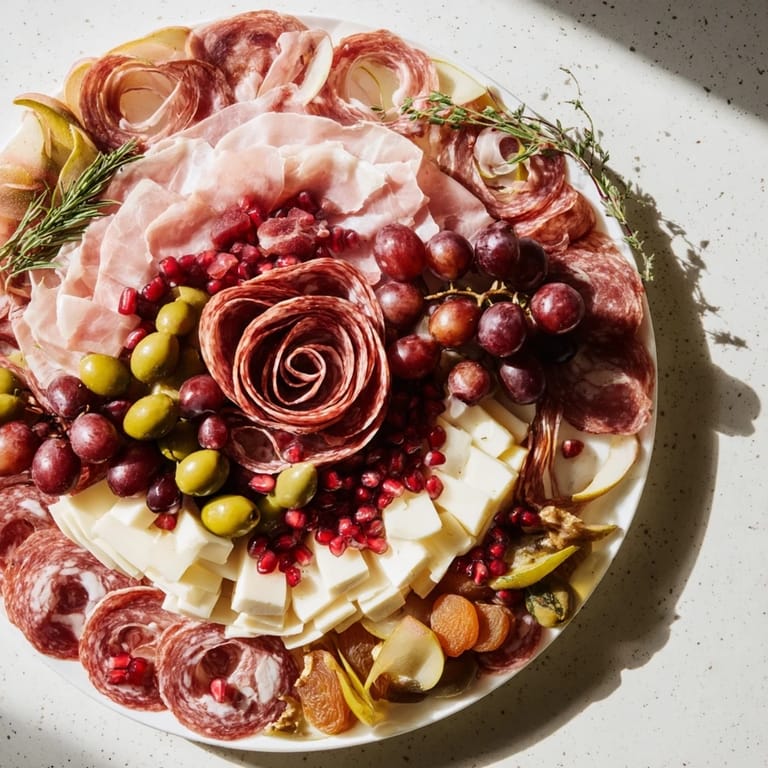 For extra color use a variety of cured meats and cheeses. Add honey or fig jam for a sweet accent. Swap in gluten-free crackers for dietary needs. Pair with sparkling wine or a light red.