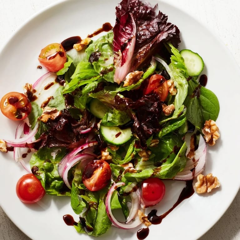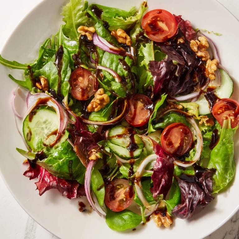 I learned early on that you can make the balsamic reduction up to a week in advance and store it in a jar in the fridge, which means you're only ever seven minutes away from a salad that tastes like you planned something thoughtful. The greens should always be fresh and dressed at the last moment, but having that reduction ready is a small act of future self-care.