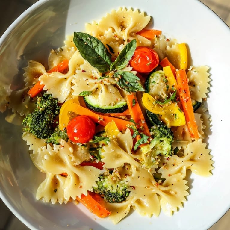 Save My neighbor knocked on the door one April afternoon with a colander full of vegetables from her garden, more than she could use. I stared at the pile of colors and textures, wondering what to do with asparagus, squash, and tiny tomatoes all at once. That evening, I boiled a box of farfalle and tossed everything together with olive oil, garlic, and a squeeze of lemon. It turned into this dish, which I now make every spring when the farmers market overflows.