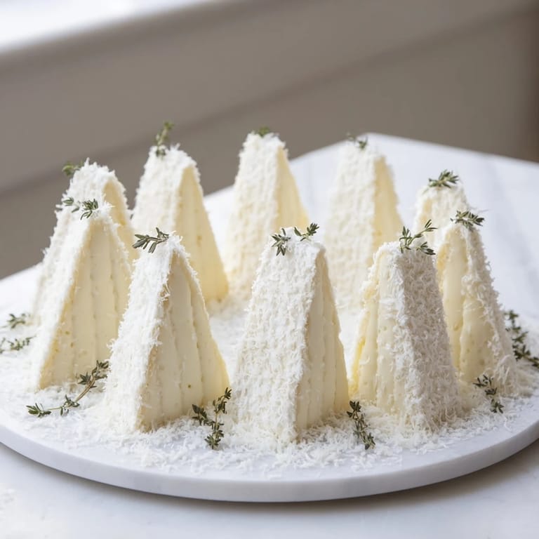 A few winters ago, I was standing in my kitchen trying to impress someone with something elegant but effortless, and I realized I had nothing but two wedges of Brie sitting in the fridge. I'd seen those fancy cheese platters with their impossible arrangements, but this felt different—quieter somehow. I arranged those pale triangles upright like little peaks and dusted them with Parmesan, and something just clicked. The dish practically made itself, and yet it looked like I'd spent hours thinking about it. That's when I understood the magic of The Snowcapped Range: it's all about making ordinary ingredients feel like an event.
